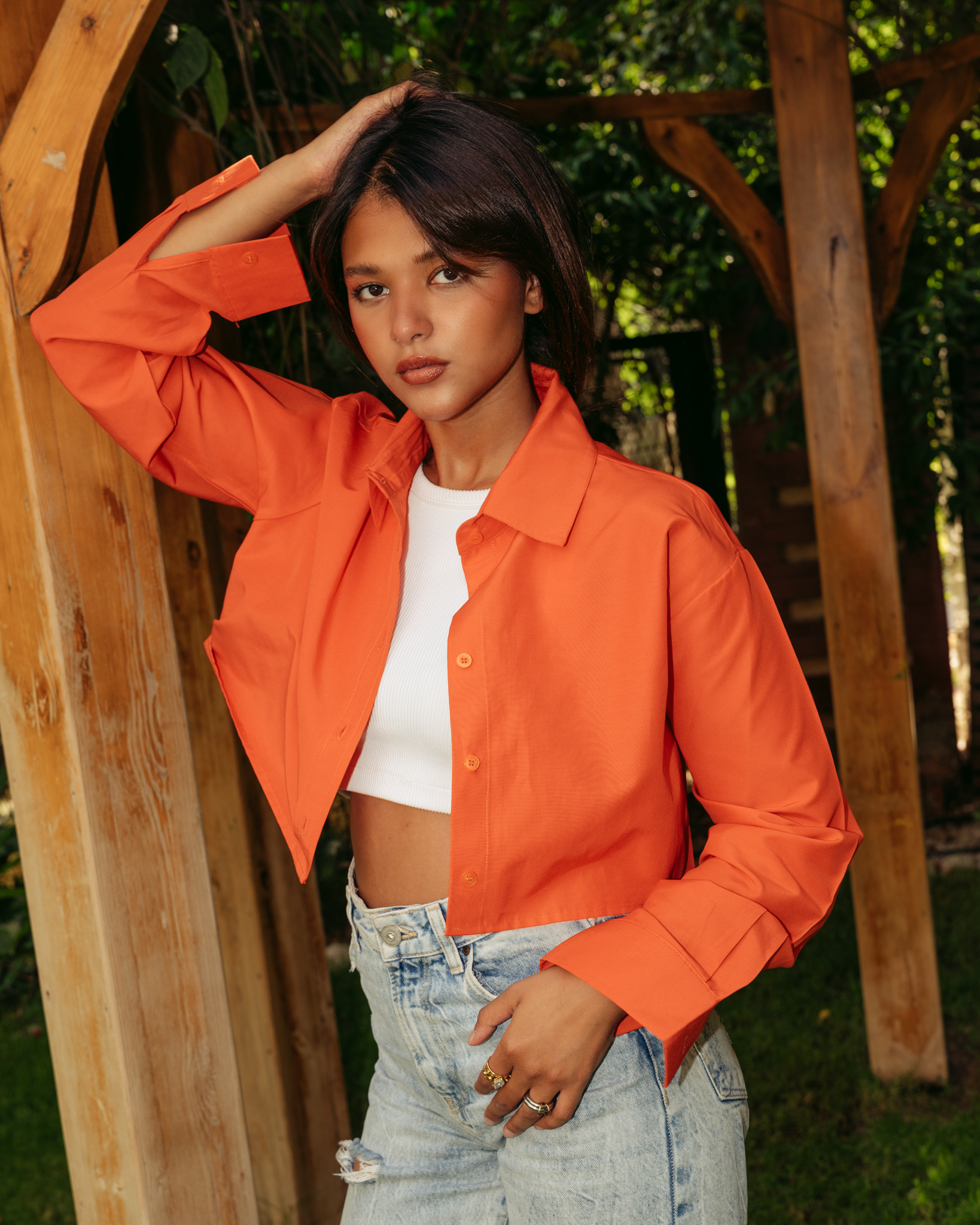 ORANGE CROPPED OVERSIZED POPLIN SHIRT